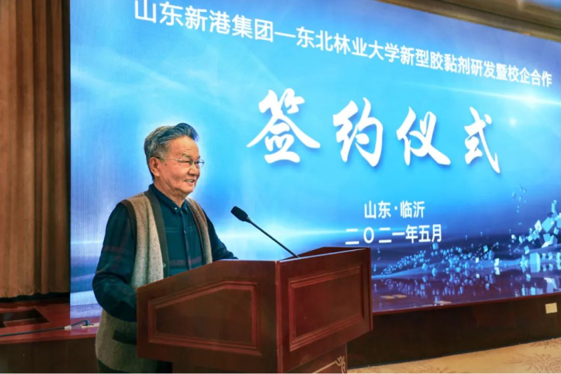 开幕式上举行了山东省重点投资、人才合作项目集中签约仪式,集团董事长魏孝新与中国工程院院士代表肖少良就“仿生无醛胶黏剂及系列新材料项目”进行签约。