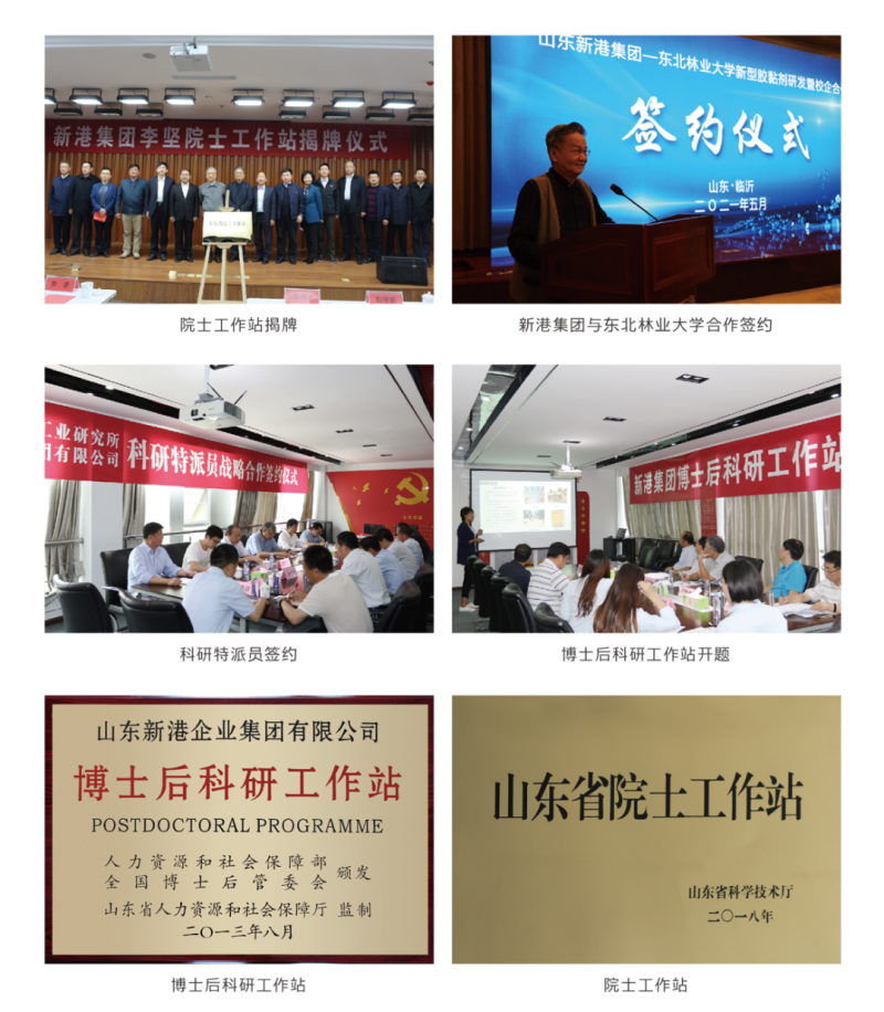 新港集团作为国家林业重点龙头企业、国家高新技术企业,设有国家博士后科研工作站、院士工作站、山东省企业技术中心、山东省环保人造板工程技术研究中心、山东省新型研发机构、临沂市功能性人造板工程实验室等科创平台。2019年,新港集团正式成立研究院,2022年新港集团检测中心顺利通过CNAS国家认可监督评审,荣获CNAS实验室认可证书。